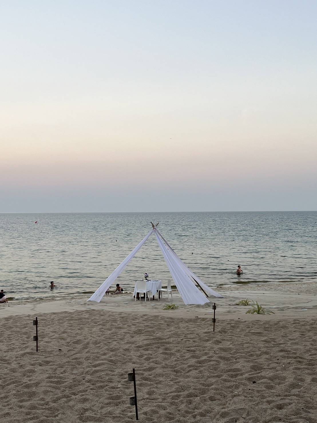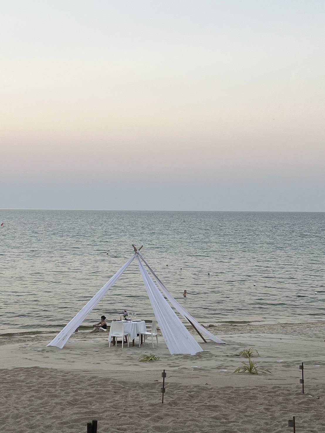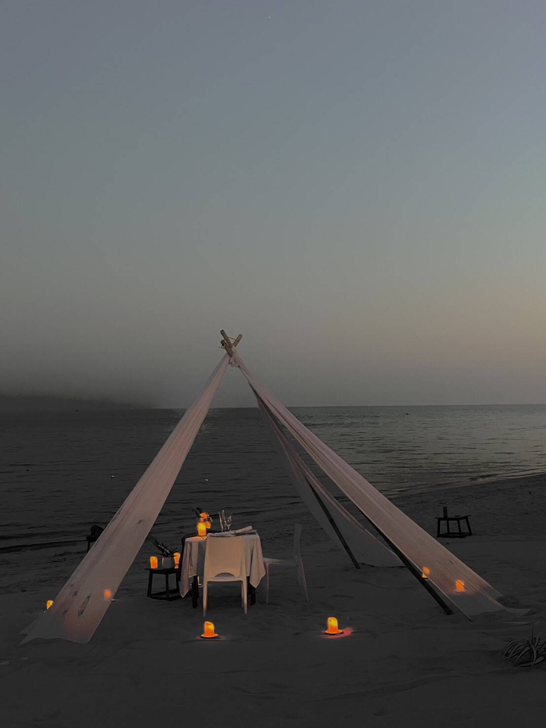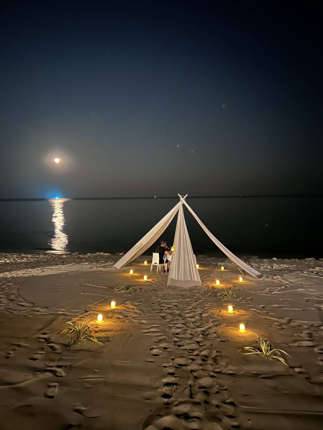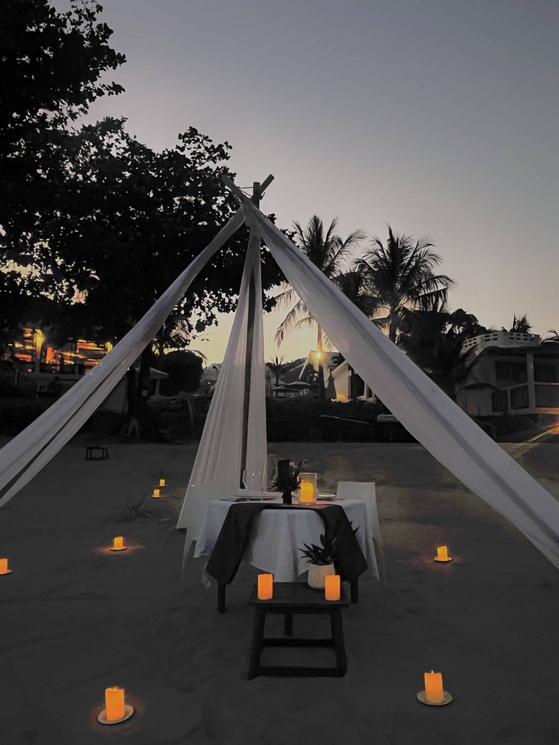 Best time to enjoy sunset + candlelight dinner by the sea.