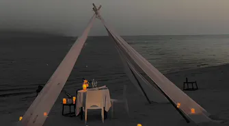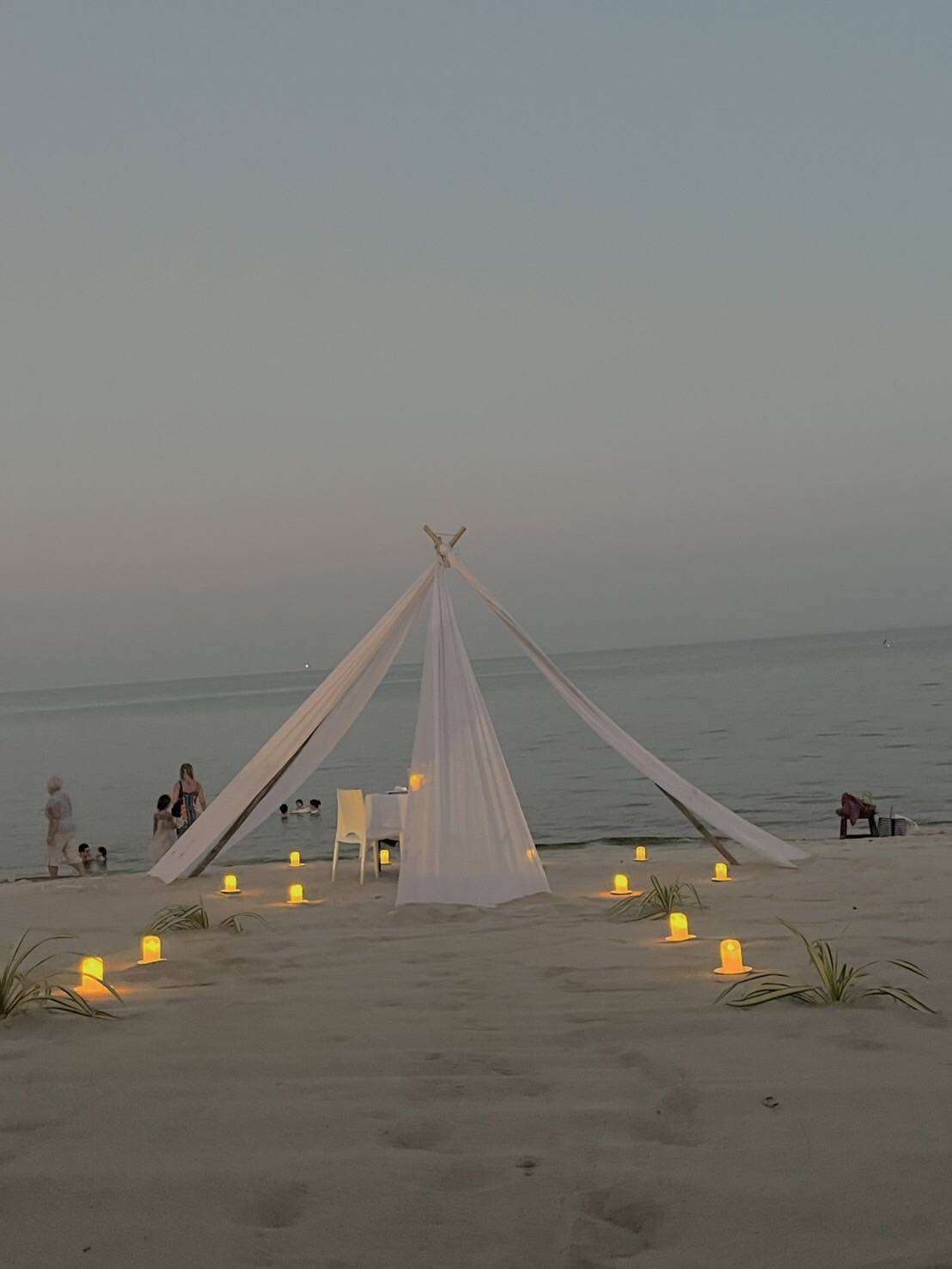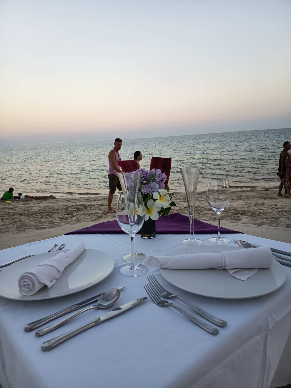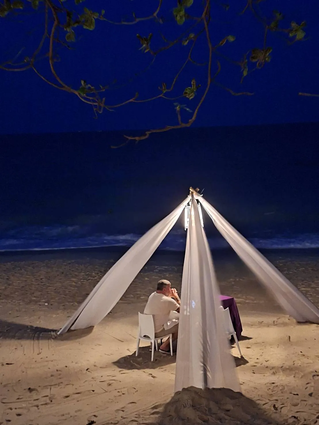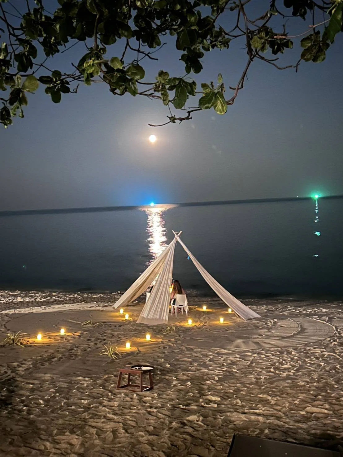 Best time to enjoy sunset + candlelight dinner by the sea.