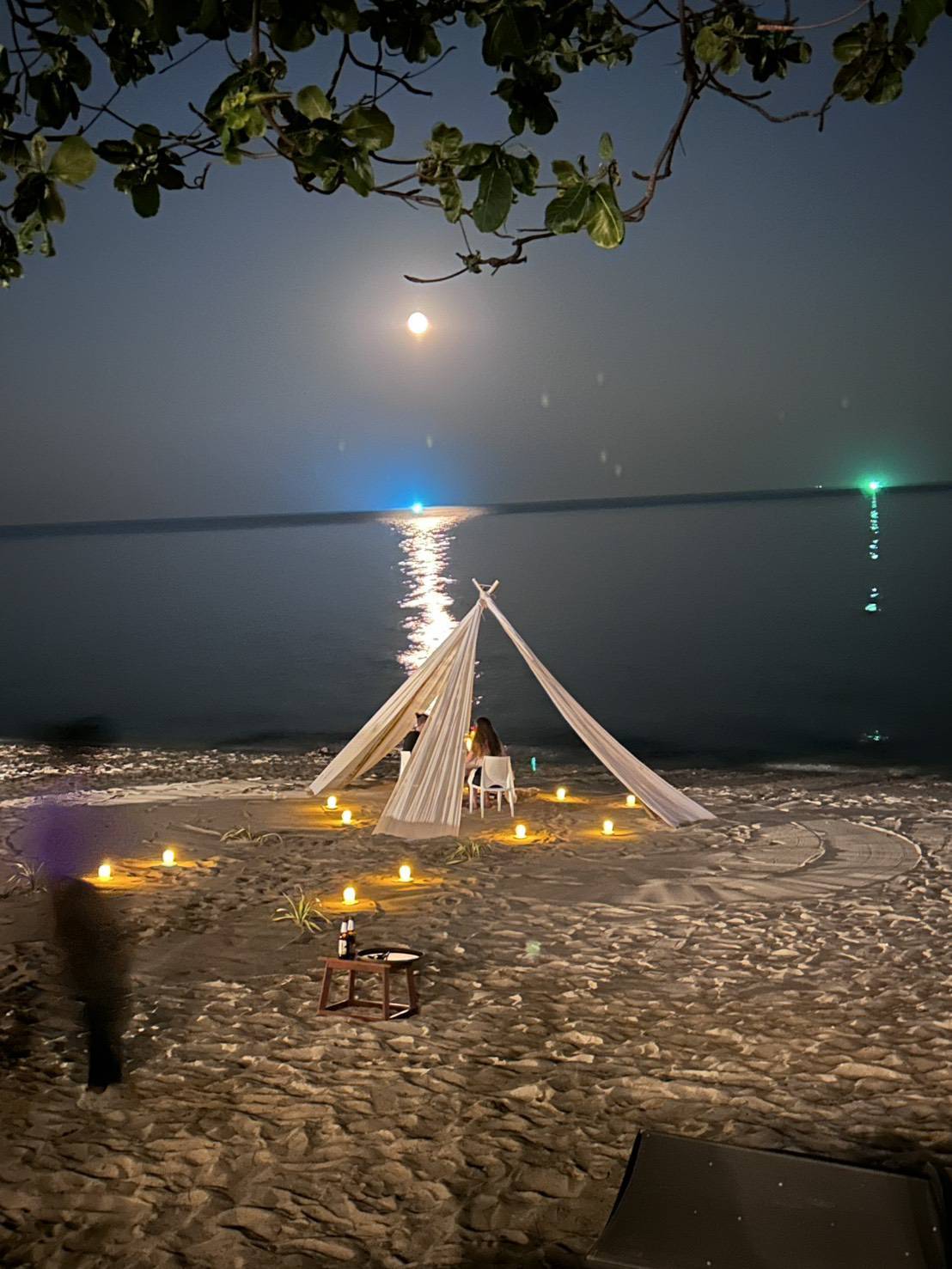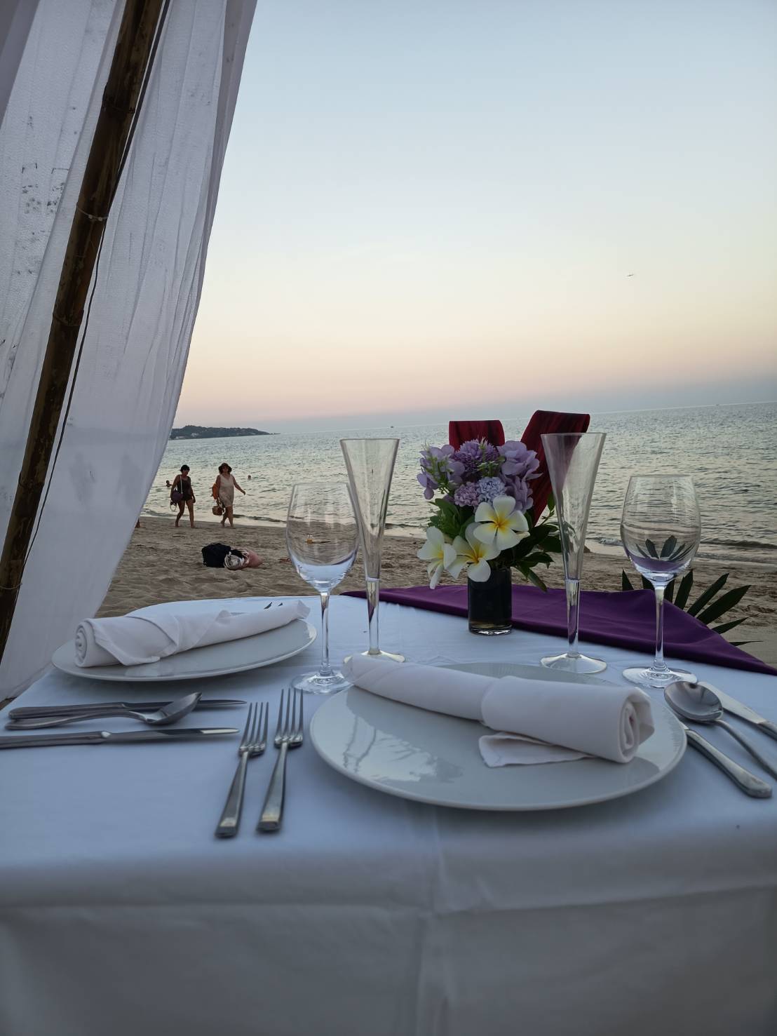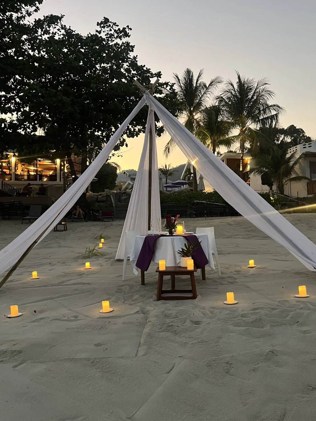 Enjoy a beautiful Romantic Dinner by the Beach — a perfect experience for couples celebrating their honeymoon, anniversary, birthday, or a special moment while staying in Koh Samui.