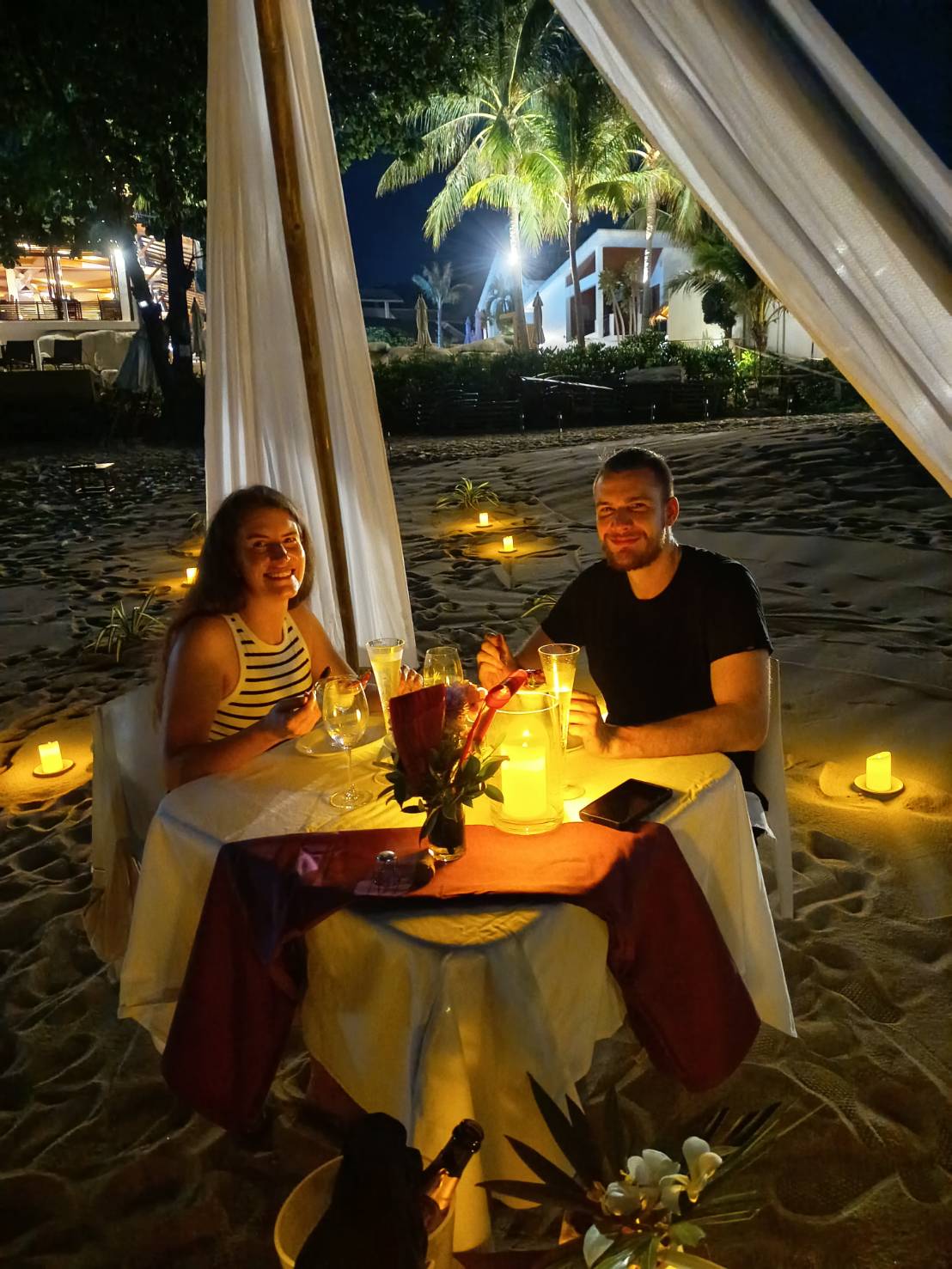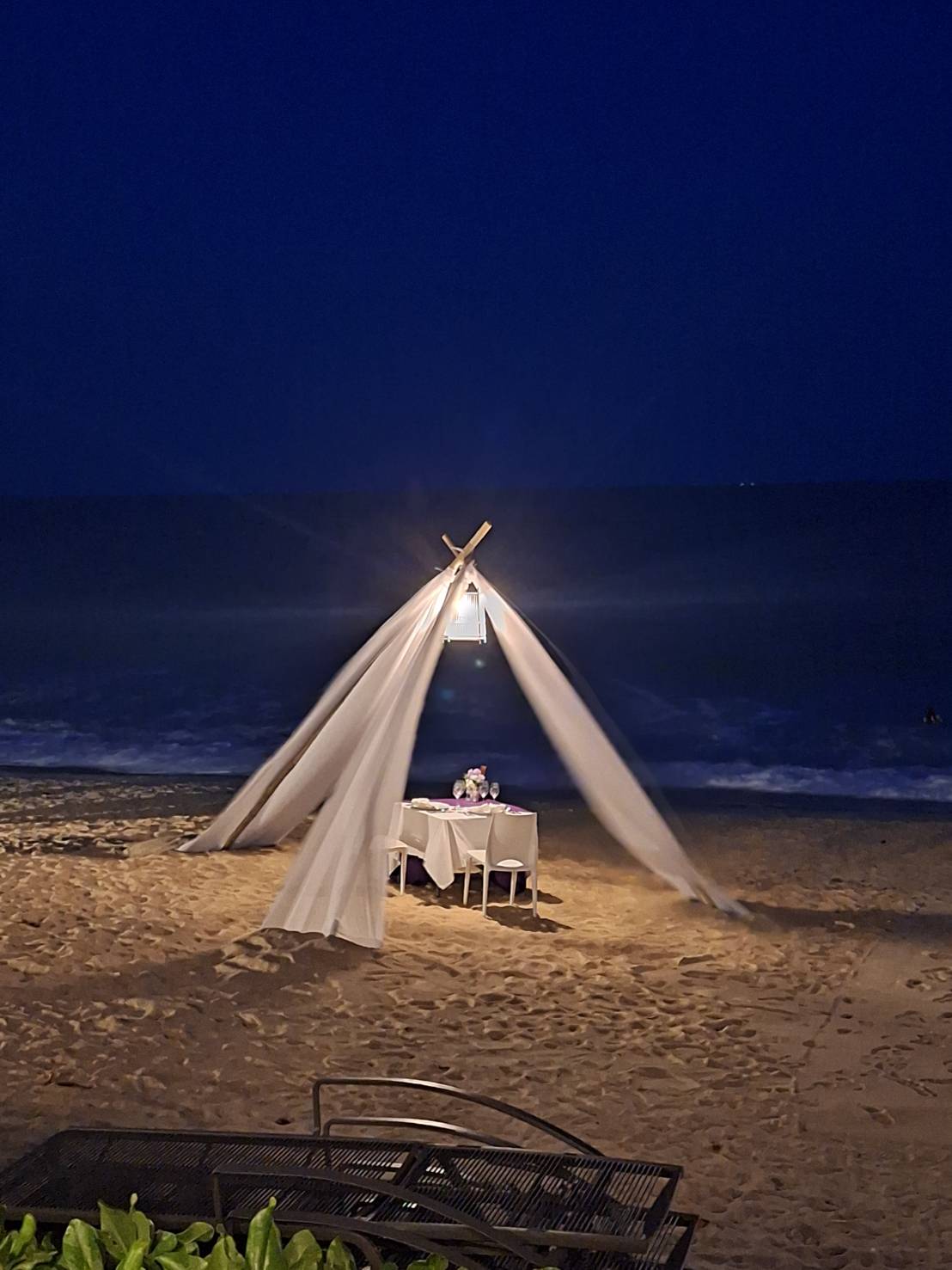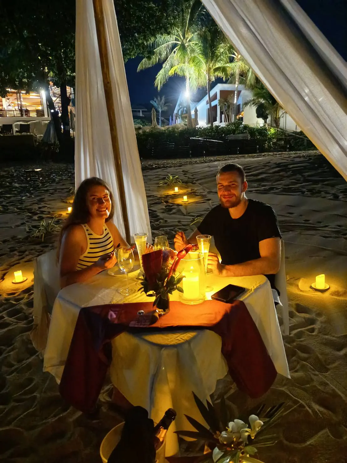 Enjoy a beautiful Romantic Dinner by the Beach — a perfect experience for couples celebrating their honeymoon, anniversary, birthday, or a special moment while staying in Koh Samui.