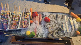 Enjoy freshly grilled seafood, premium meats, and international favorites prepared live by our chefs, while relaxing to the sound of gentle ocean waves.
