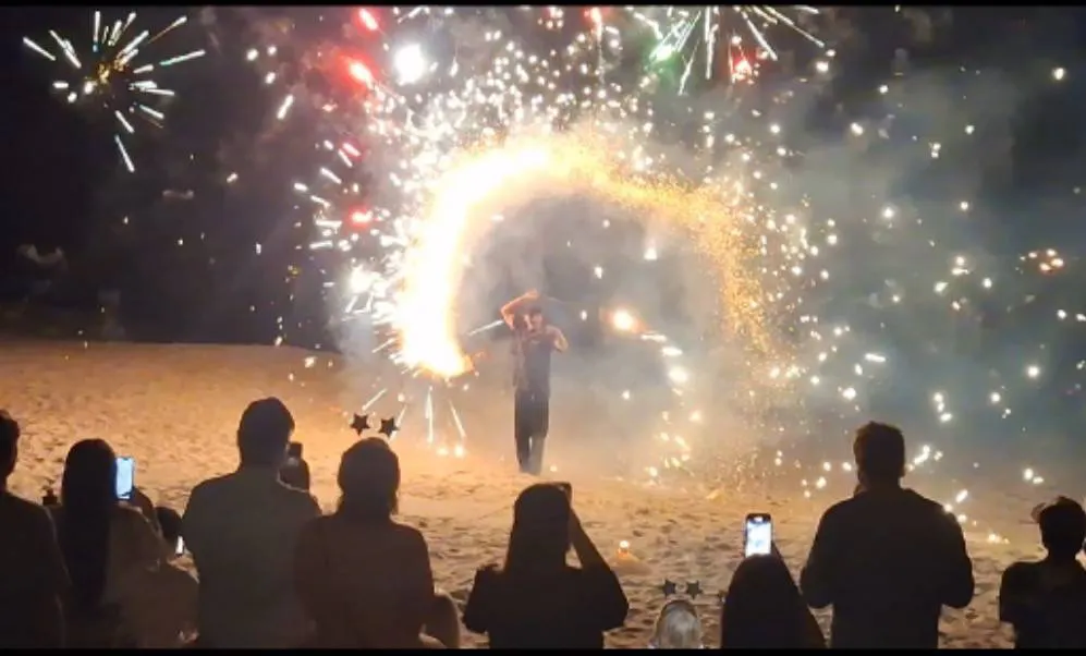 As the night falls, be amazed by an exciting Fire Show performance, lighting up the beach with thrilling spins, sparks, and island energy under the stars.