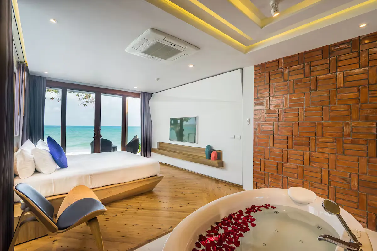 Experience the ultimate beachfront getaway in our 37 sqm villa, perfect for two guests. Nestled along the renowned Lamai Beach, this cozy retreat offers direct access to golden sands and stunning ocean views. With its prime location and intimate setting, our villa is the ideal choice for a relaxing escape by the sea.